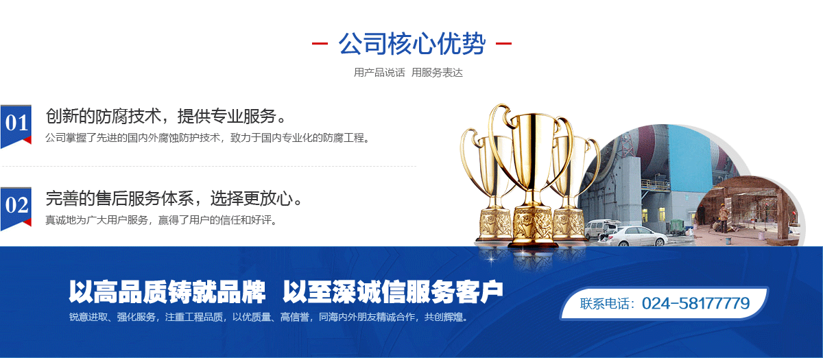 體系,取得了化工防腐蝕施工資質等級一級單位,遼寧省腐蝕與防護學會防腐施工專業委員